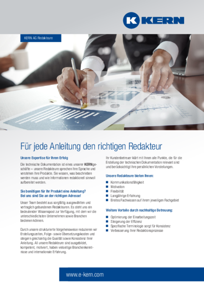 - Die technischen Redakteure und Redakteurinnen der KERN TecDoc verfügen über das notwendige fachspezifische Know-how.
